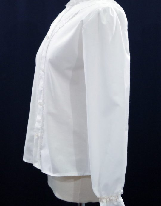 Delantal de algodón en color crudo, trabajado con jaretas y puntillas de bolillo.